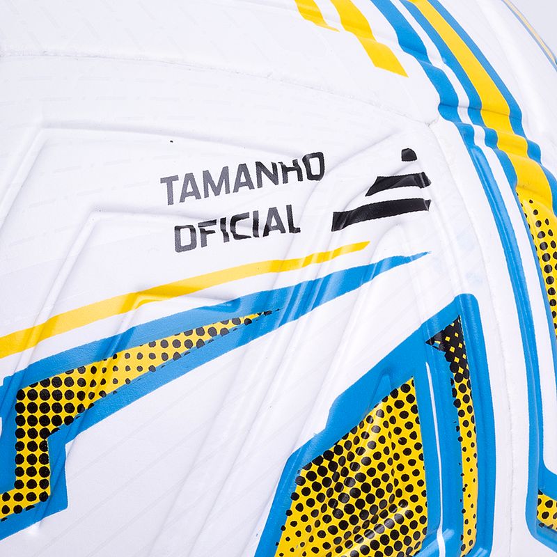 bola de futebol campo resistente, precisa e com excelente controle, ela combina tecnologia avançada, materiais de alta qualidade e design moderno em amarelo e azul que garante alta visibilidade dentro das quatro linhas.